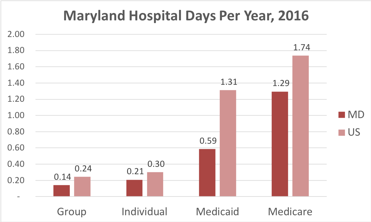 Delaware residents with all types of insurance spent fewer days in the hospital as the average of all states.